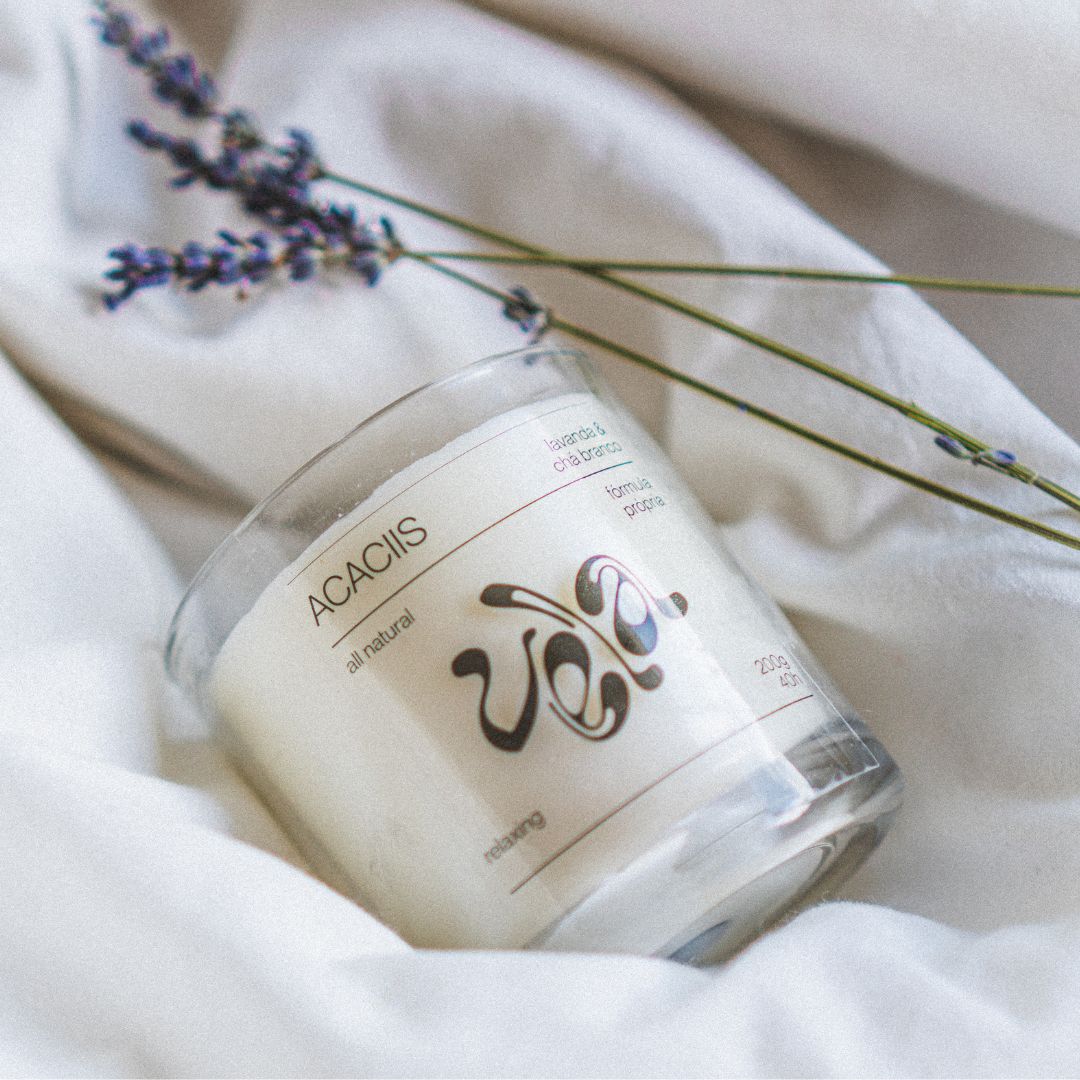 LAVANDA & CHÁ BRANCO - Com cera 100% vegetal, esse aroma traz o equilíbrio entre a suavidade da lavanda e a pureza do chá branco. Perfeito para pausas conscientes, leitura, skincare ou só para existir em paz no próprio espaço. Calmante natural e melhora o sono.